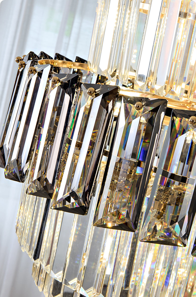 Villa crystal staircase chandelier, delicate texture, designers design the lamp shape for free, the company’s large exhibition hall can watch samples in video